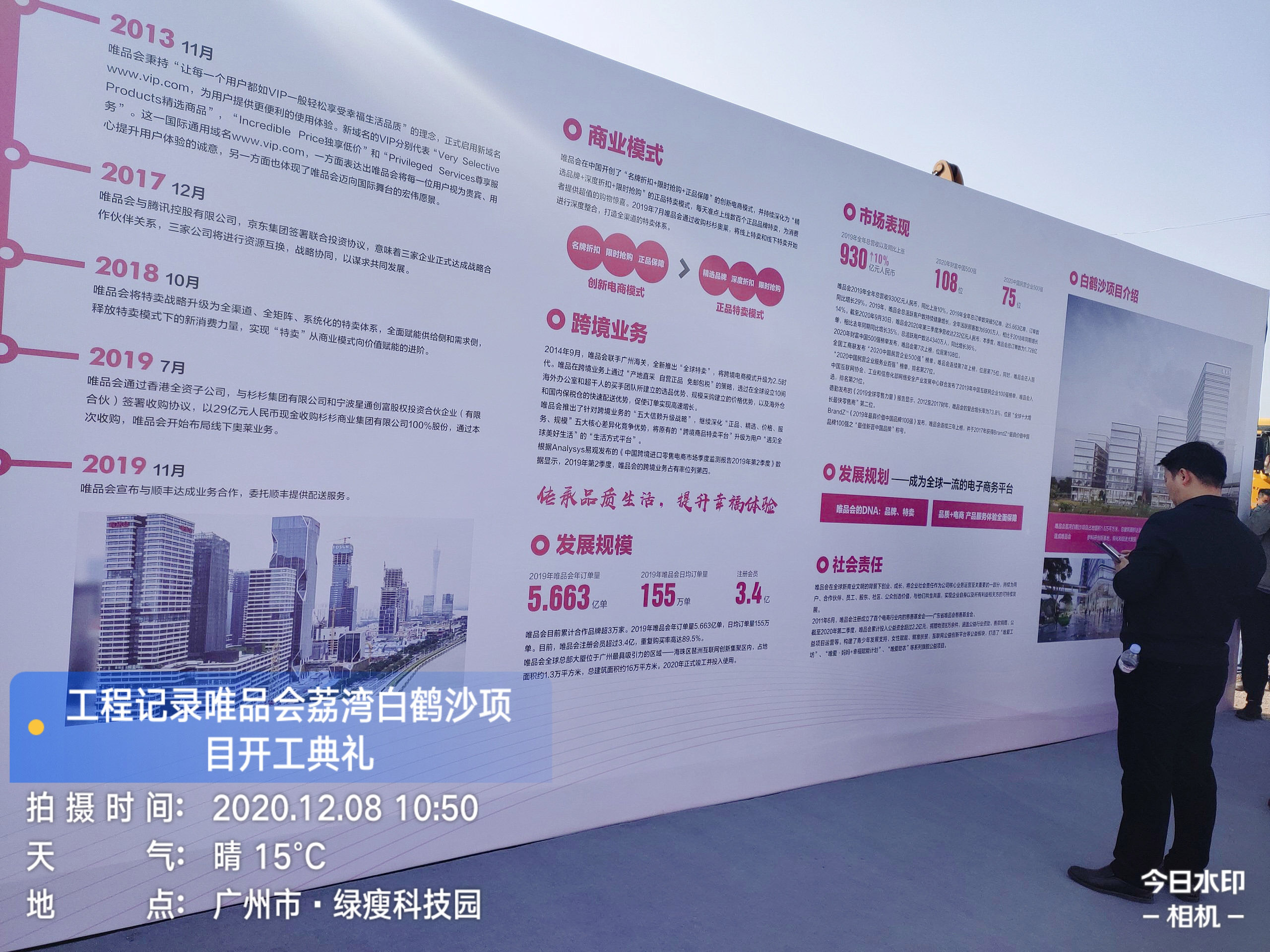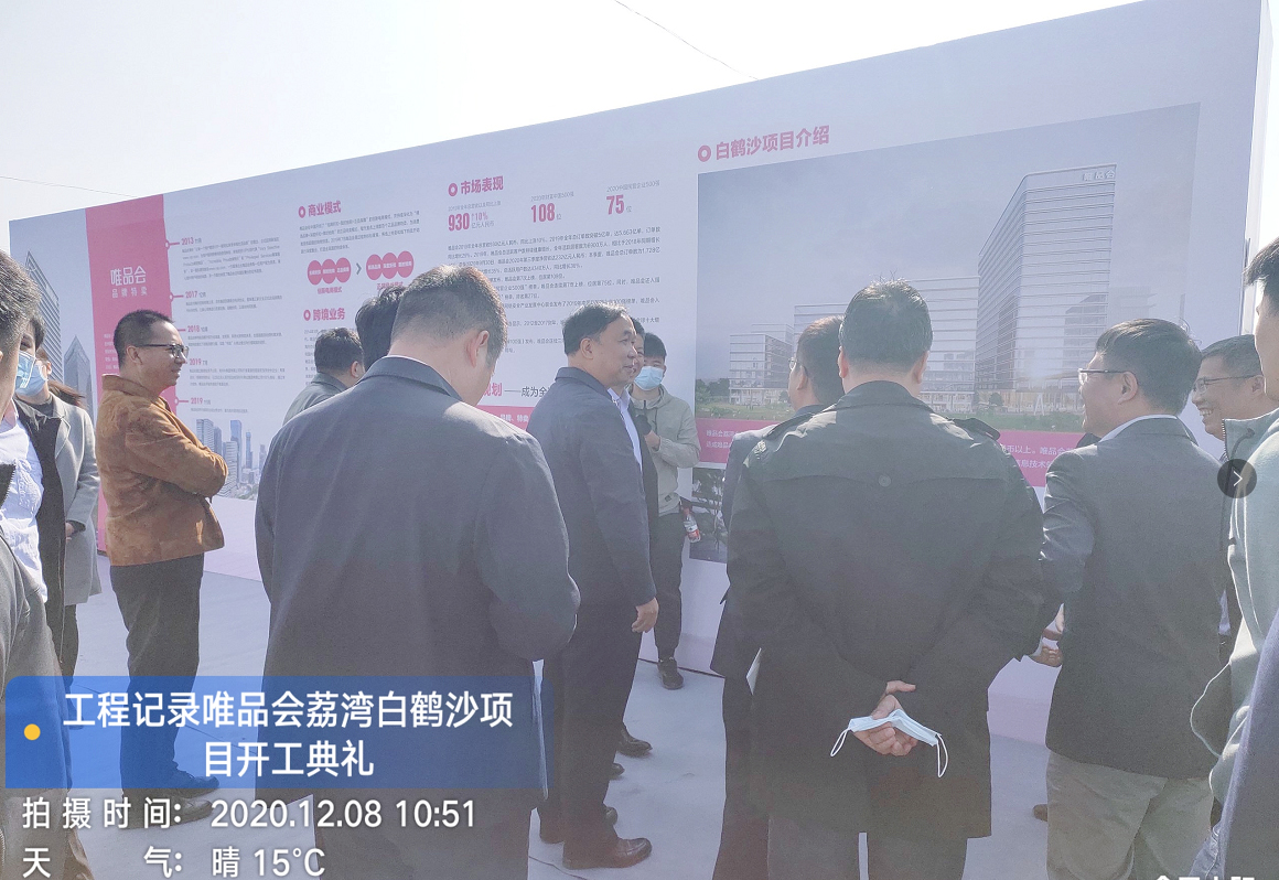 2020年12月8日,国际著名的电商、美国上市公司唯品会的荔湾白鹤沙项目开工典礼隆重举行。荔湾区毕区长、唯品会联会创始人、董事长兼CEO沈亚,广东穗芳智慧建设科技有限公司彭晖总经理等参加当天的开工仪式。这样就标志着由我司(广东穗芳智慧建设科技有限公司)监理的唯品会白鹤沙项目正式启动。