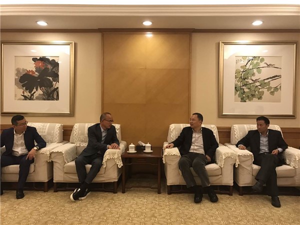 ▲广东省发改委主任何宁卡(右二)与复星集团董事长郭广昌(左二)交流