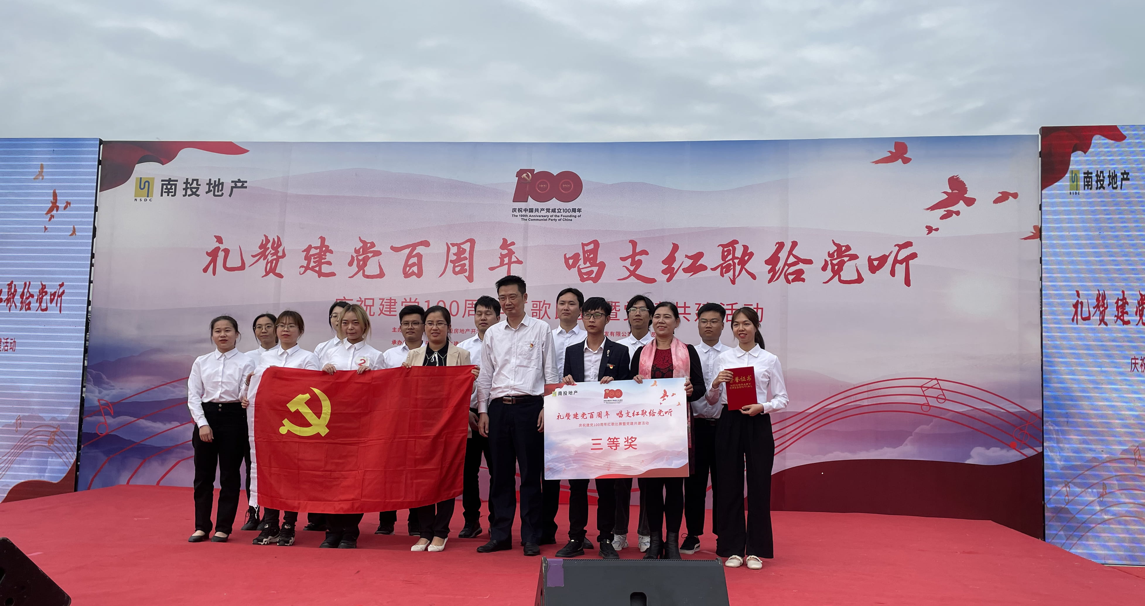 为庆祝中国共产党成立100周年,弘扬爱国主义精神,展现党员群众积极向上的精神风貌。南投地产组织举办了《礼赞建党百周年,唱支红歌给党听》活动,共9家党建共建单位参加比赛,为落实好此项工作,我司党支部及公司领导高度重视,及时成立领导小组,制定排练计划,组织党员群众积极参赛。
