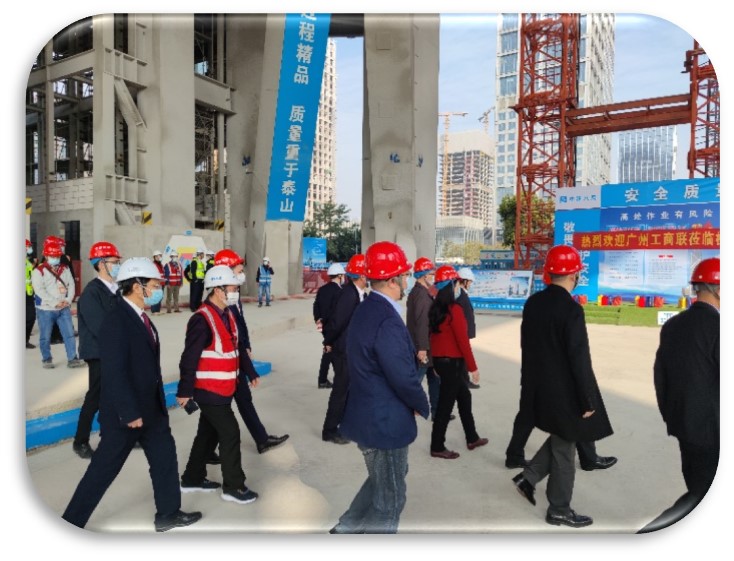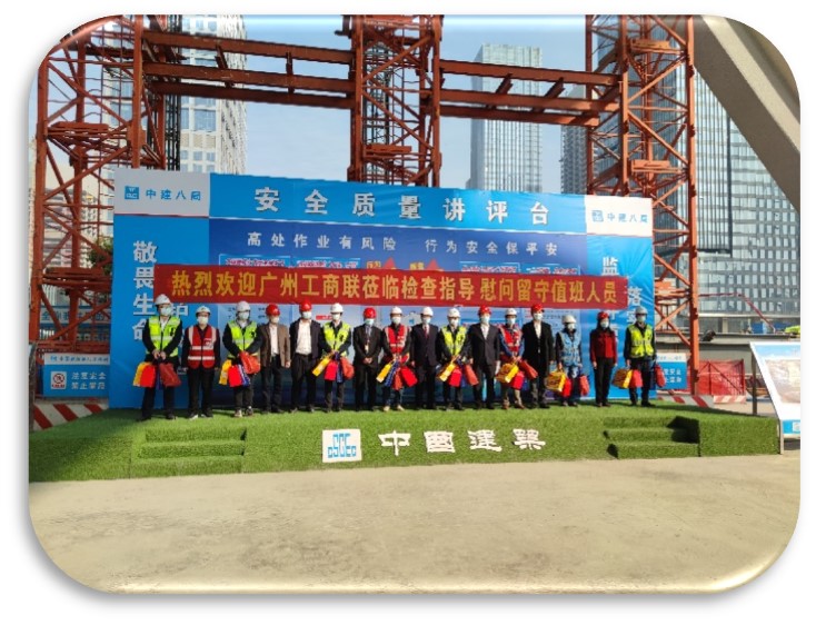 2022年1月21日,中共市委统战部副部长、市工商联党组书记魏国华,市工商联党组成员、秘书长、市非公党委书记熊鹰,市工商联非公党办主任王䘵超,广商中心联络协调办公室主任李军、星河湾集团副总裁刘德生、星河湾集团副总裁卢文兵,广东穗芳智慧建设科技有限公司总经理彭晖以及参建各方现场主要负责人对广商中心项目春节留守人员进行了现场慰问,对项目的各项管理工作提出了表扬。